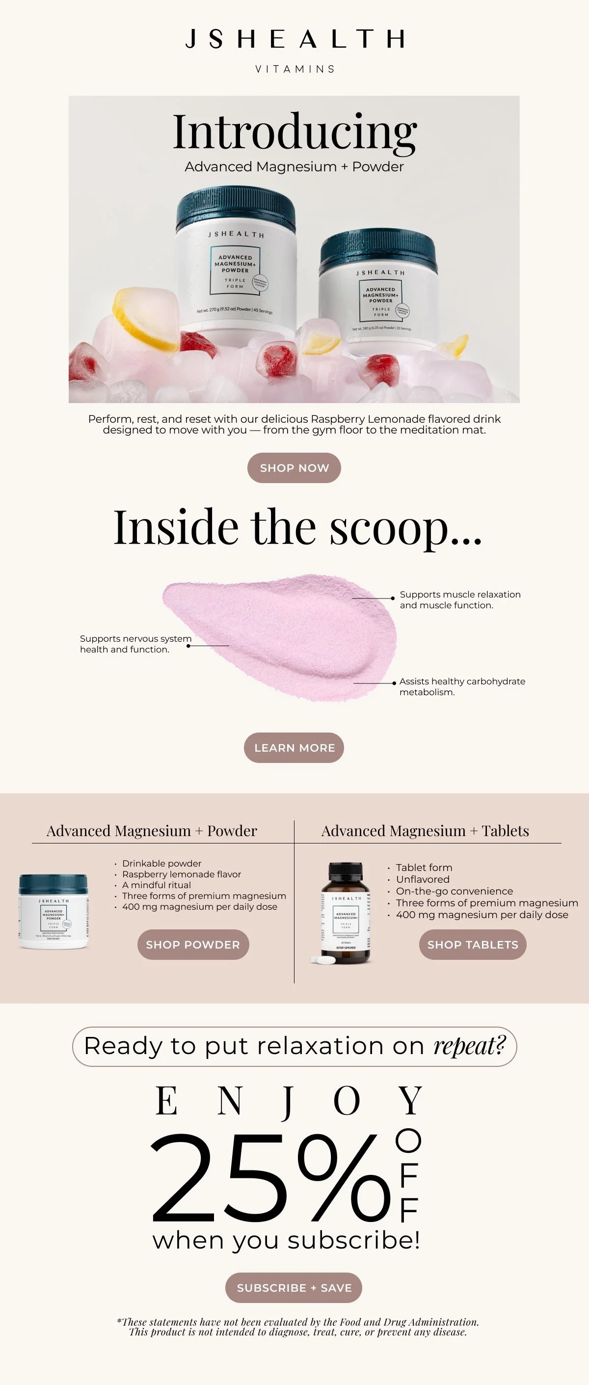JSHealth is launching its new Advanced Magnesium + Powder. To support the launch, a targeted email campaign was developed highlighting the product’s key benefits.
